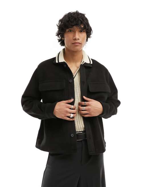 Bershka – Langärmliges Hemd in Schwarz mit zwei Taschen