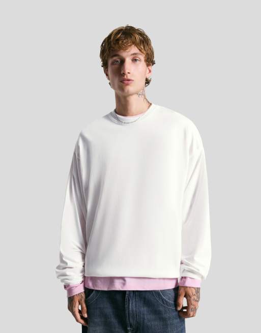 Bershka – Langärmliges, kastiges T-Shirt in Weiß