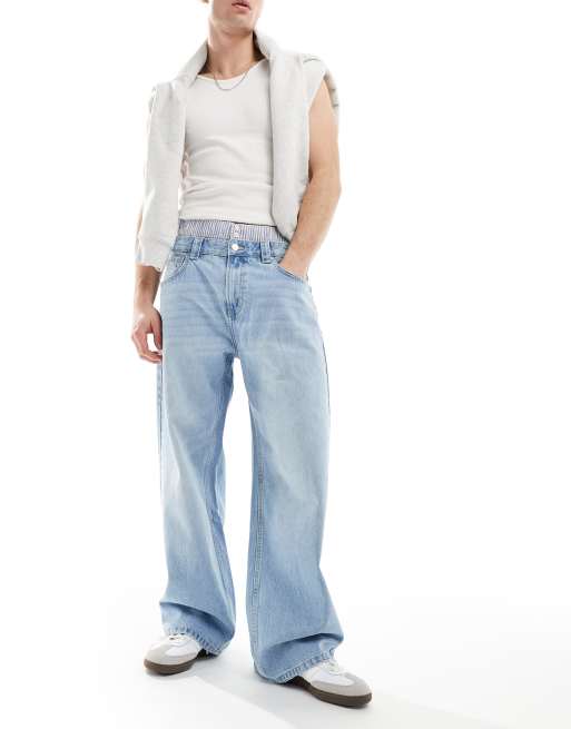 Bershka – Lässige Jeans in Blau mit Boxer-Bund