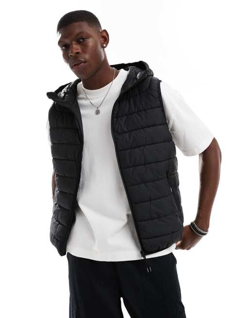 Bershka – Leichtes Gilet in Schwarz mit Kapuze