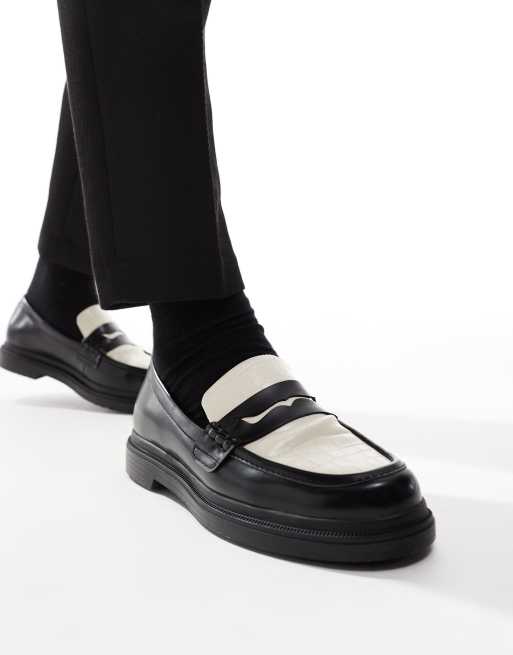 Bershka – Loafer in Schwarz mit Kontrastdesign