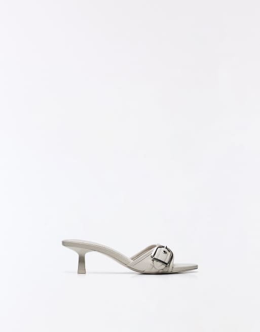 Bershka – Mules in Weiß mit Absatz und Schnalle
