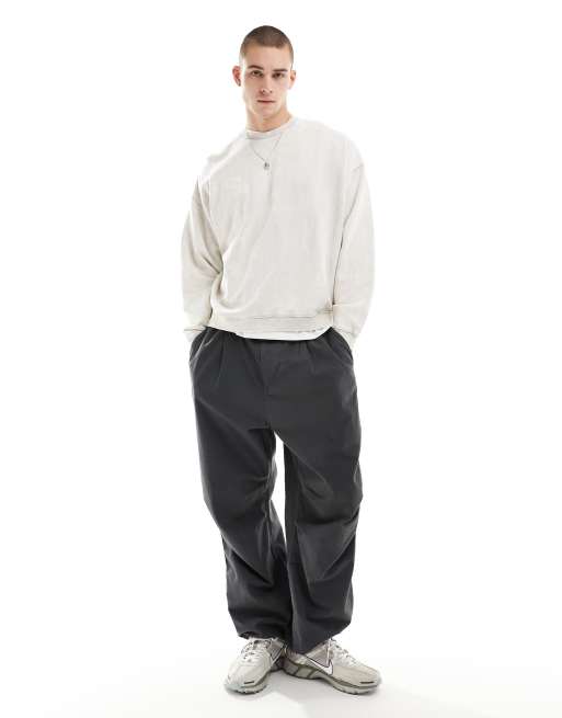 Bershka – Oversize-Sweatshirt in Beige mit farblich abgestimmter Stickerei