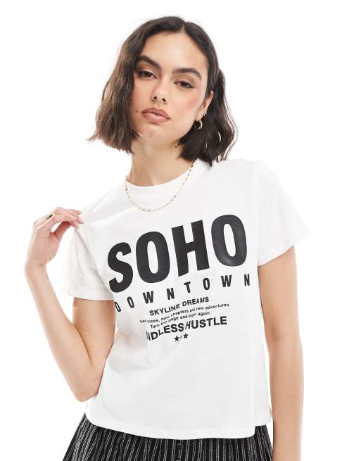 Bershka – Oversize-T-Shirt in Weiß mit „Soho“-Print