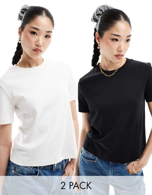Bershka – Oversized-T-Shirt im 2er-Pack in Schwarz und Weiß