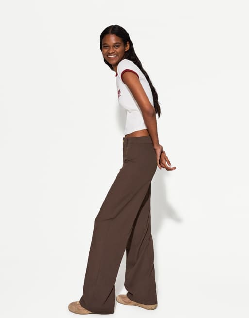 Bershka Petite – Hose in Braun mit weitem Bein