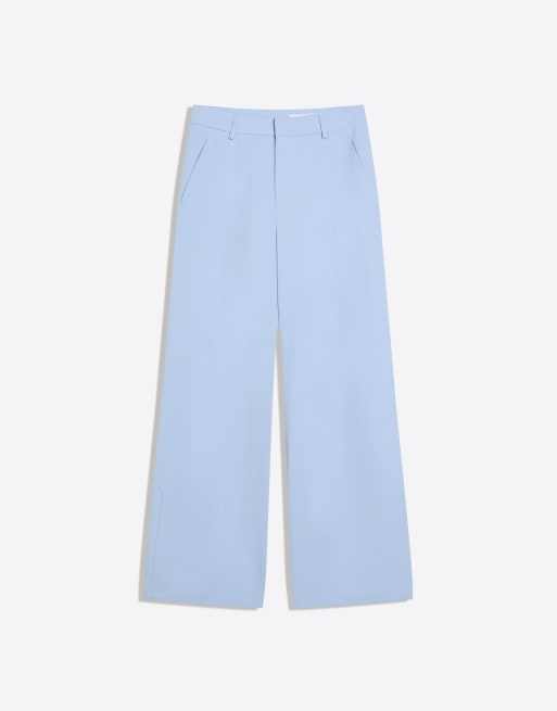 Bershka Petite – Voluminöse Hose aus doppeltem Stoff in Hellblau