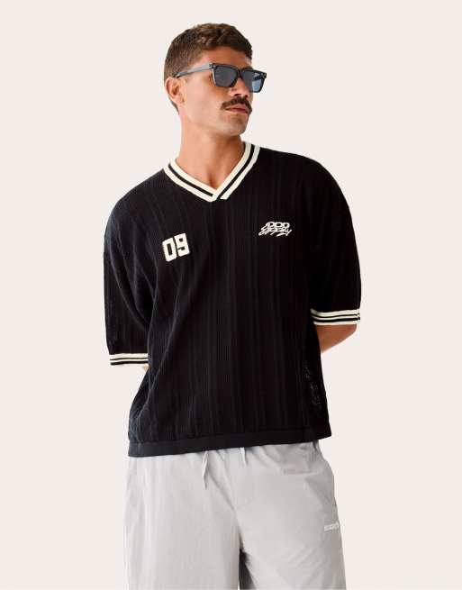 Bershka – Retro-Sport-T-Shirt in Schwarz