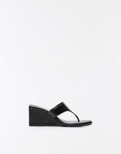 Bershka – Sandaletten in Schwarz mit Keilabsatz