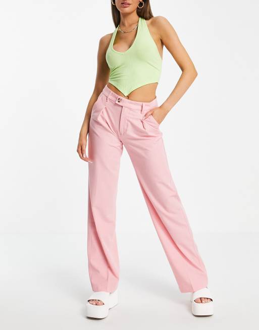 Bershka – Schmal geschnittene Hose in Rosa mit geradem Bein