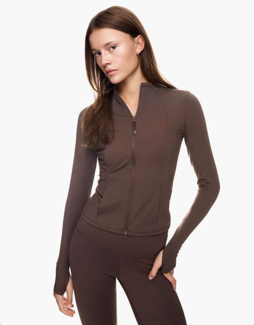 Bershka – Schnelltrocknende und atmungsaktive Jacke in Braun mit Reißverschluss