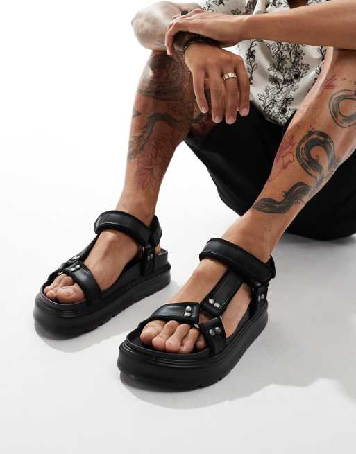 Bershka – Schwarze Sandalen mit Schnallenriemen