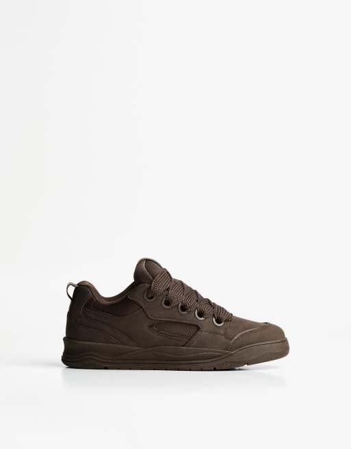 Bershka – Skater-Sneaker in Braun mit dicker Sohle