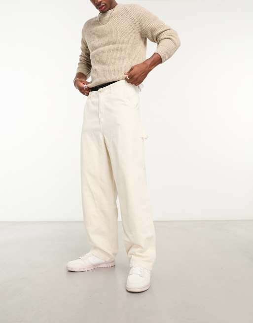 Bershka – Solide Carpenter-Hose in Ecru