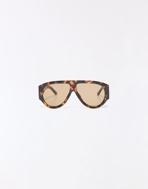 Bershka – Sonnenbrille aus Kunststoff in Braun