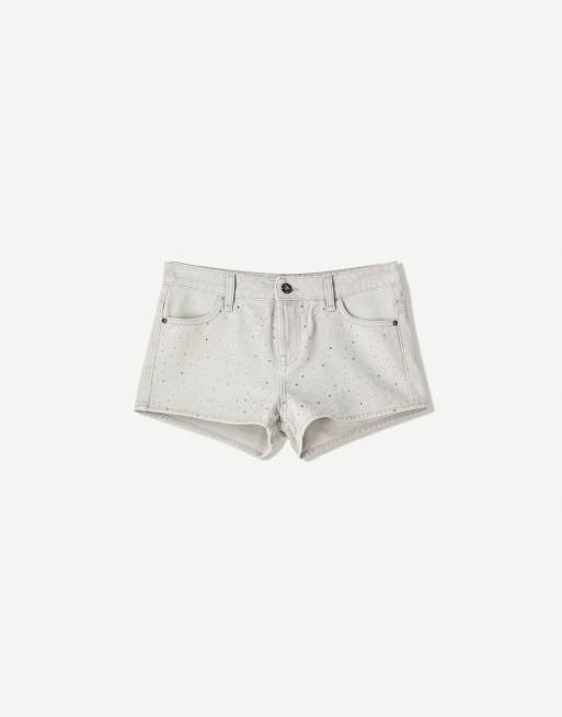 Bershka – Strass-Shorts in Hellgrau