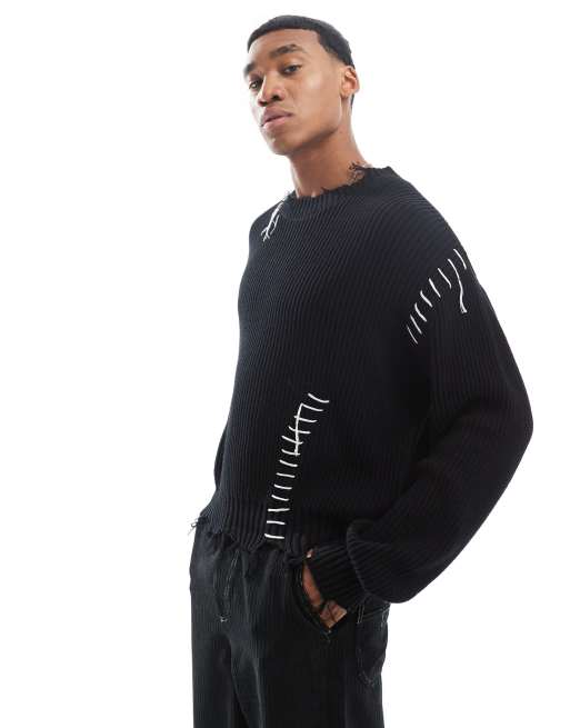 Bershka – Strickpullover in Schwarz mit Ziernähten