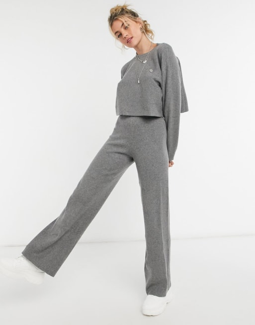 Bershka – Strickpullover und Hose mit weitem Bein in Grau, Set