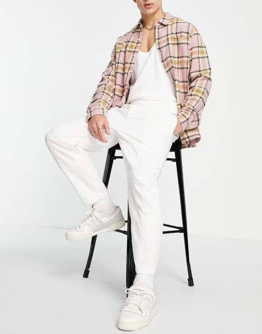 Bershka – Strukturierte Oversize-Hose in Weiß