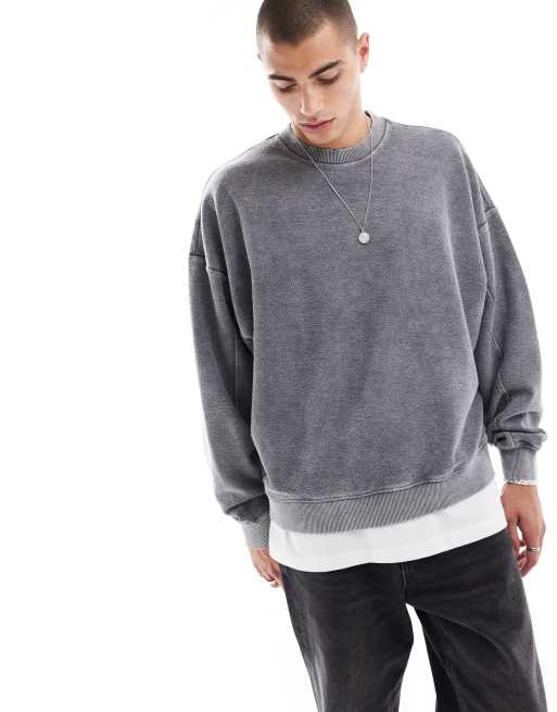 Bershka – Strukturiertes Sweatshirt in verwaschenem Schwarz