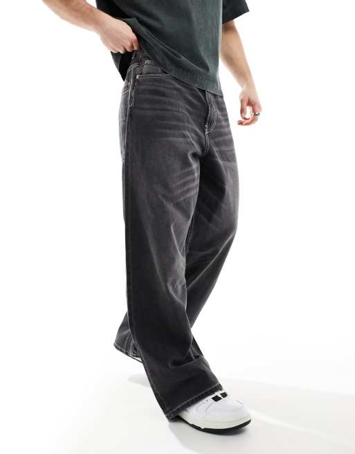 Bershka – Superweite Jeans in verwaschenem Schwarz
