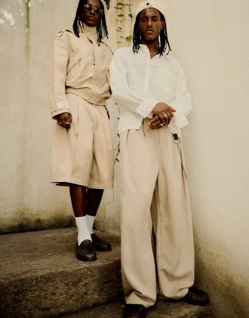 Bershka – Superweite, weich fallende Hose in Beige mit Falten