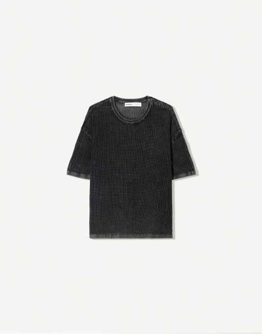 Bershka – T-Shirt aus Netzstoff in Schwarz