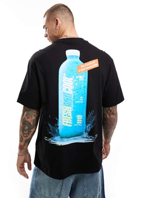 Bershka – T-Shirt in Schwarz mit Flaschenprint auf dem Rücken