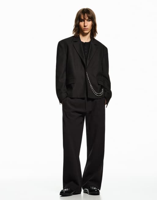 Bershka – Tailored-Fit-Blazer in Schwarz mit Kettendetail