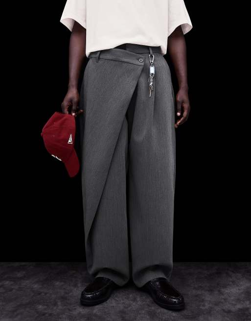 Bershka – Tailored-Fit-Hose in Grau und Schwarz mit überkreuztem Bund