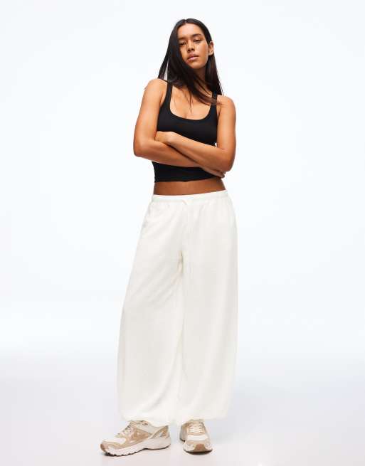 Bershka Tall – Rustic – Sarouel-Hose in Weiß