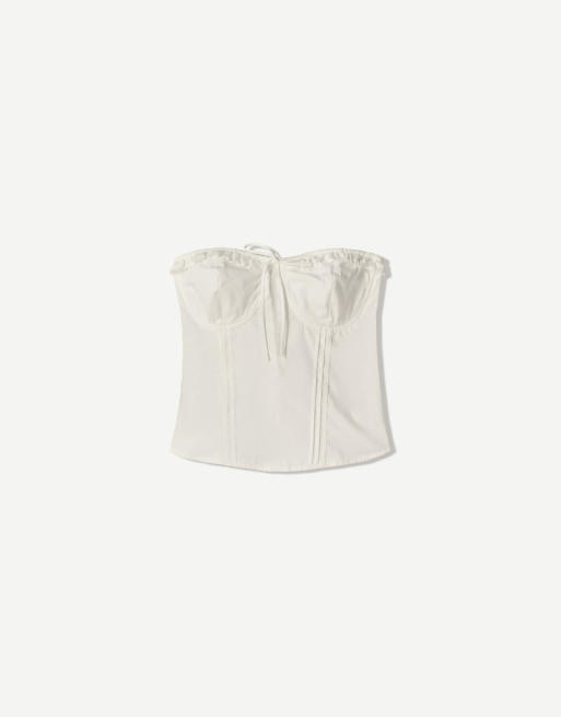 Bershka – Trägerloses Popeline-Oberteil in Weiß