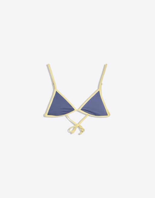 Bershka – Triangel-Bikinioberteil in Blau mit Kontrast-Design