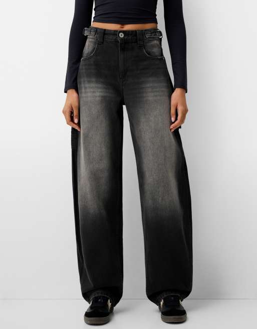 Bershka – Verstellbare Balloon Fit Carpenter-Jeans in Braun