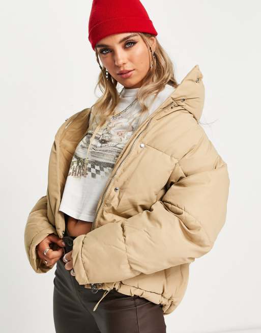 Bershka – Wattierter Oversize-Steppmantel in Camel