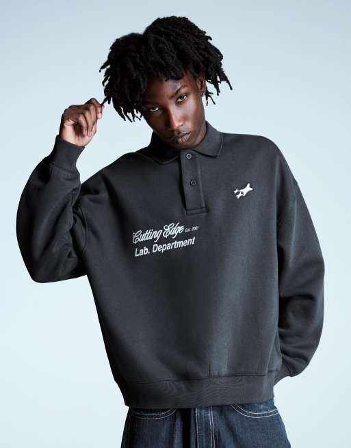 Bershka – Weiches Polo-Sweatshirt in Grau mit Print