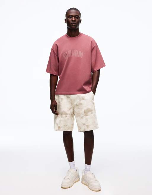 Bershka – Weite Bermudashorts in Grau mit All-over-Print