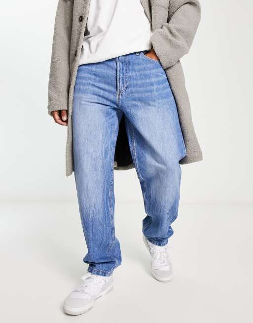Bershka – Weite Jeans im Stil der 90er, in Mittelblau
