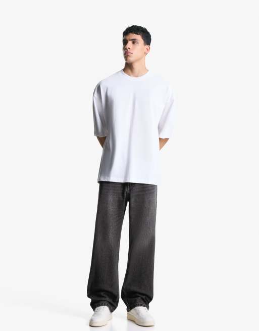 Bershka – Weite Jeans in Grau