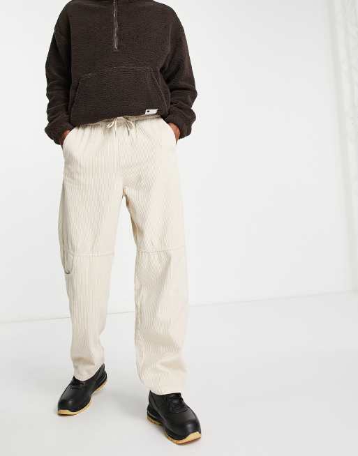 Bershka – Weite Jogginghose aus Cord in Steingrau