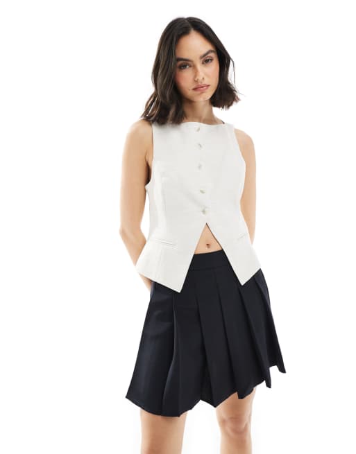 Bershka – Weste in Ecru mit Rundhalsausschnitt