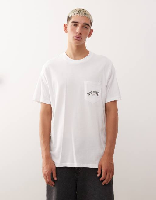 Billabong – Stacked – T-Shirt in Weiß mit Brusttasche und gebogenem Stapel-Logo