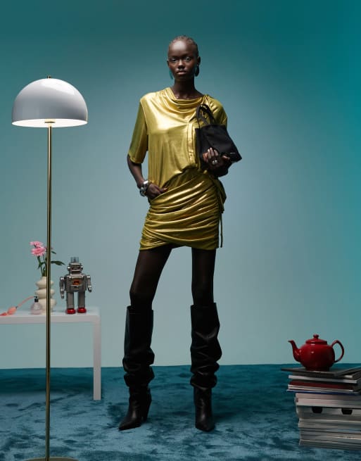 BIMBA Y LOLA – Geraffter Minirock in Metallic-Olivgrün, Kombiteil