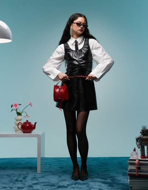 BIMBA Y LOLA – Gerafftes Minikleid aus schwarzem Kunstleder