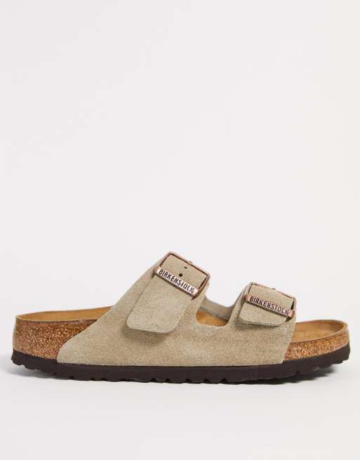 Birkenstock – Arizona – Flache Sandalen aus Wildleder in Taupe