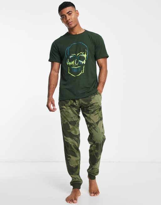 Bolongaro Trevor – Lounge-Set in Khaki mit Skelett-Grafikprint