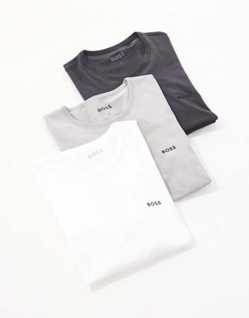 BOSS Bodywear – 3er-Pack T-Shirts in Grau und Weiß mit Logo