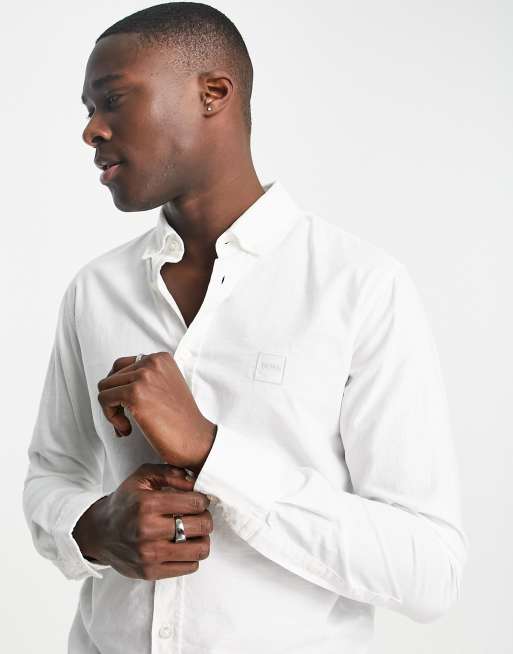 BOSS – Mabsoot – Schmal geschnittenes, langärmliges Hemd in Weiß
