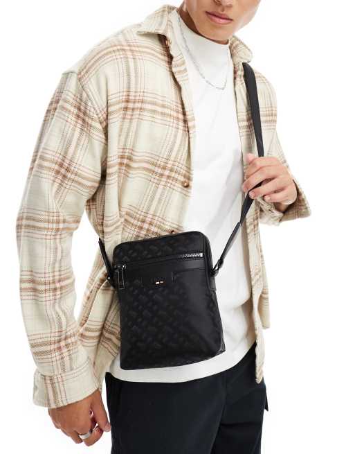 BOSS – Trystan – Umhängetasche in Schwarz mit durchgehendem Monogramm-Print