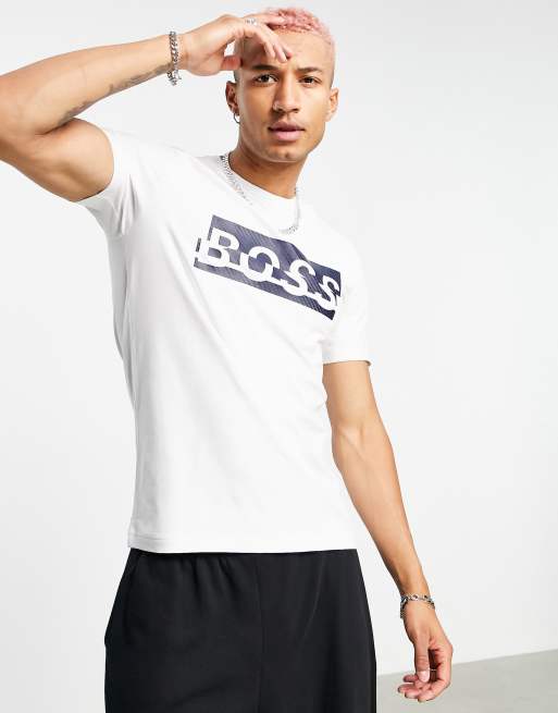 BOSS – Athleisure Tee 4 – Weißes T-Shirt mit großem Logo